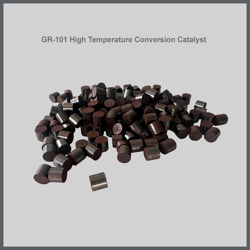 GR-101high temperature shift catalyst is an energy-saving product, which is suitable for large and medium-sized synthetic ammonia or hydrogen production units using coal, light oil, natural gas, oilfield gas, etc. as raw materials, and is especially suitable for use under low steam-gas ratio conditions in energy-saving synthetic ammonia units. The catalyst has high activity, high mechanical strength, low bulk density, selectivity under low steam- gos roti o conditions, low sulfur content in the body, and short sulfur release time.