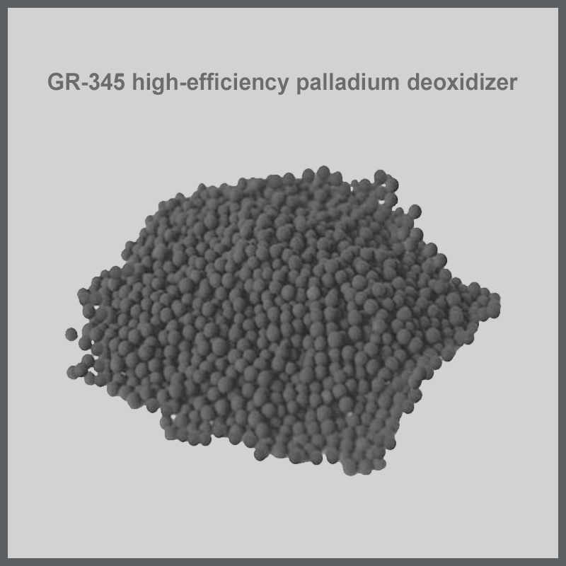 GR-345 high efficiency palladium deoxidizer is a Pd/Al203 active system with non-uniform distribution. The characteristics of this deoxidizer are high efficiency of precious metal use and high deoxidation activity.